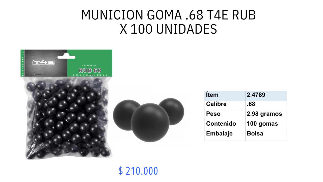 Municion Goma .68 x 100 unidades