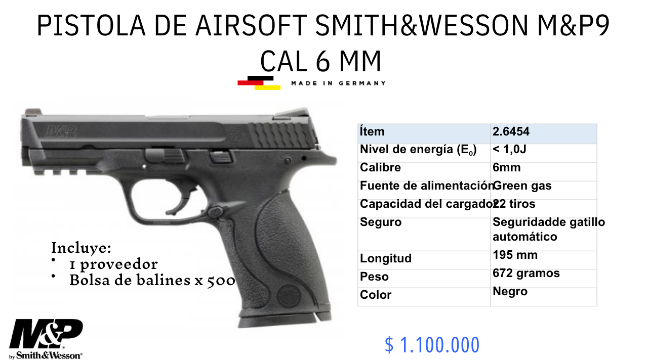 Pistola De Airsoft SMITH Y WESSON MYP9 c/6mm