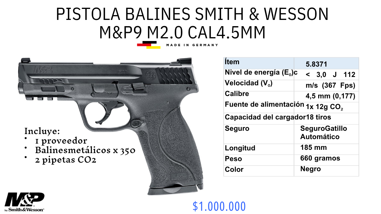Pistola De Balines SMITH Y WESSON MYP9 M2.0 C/4.5mm