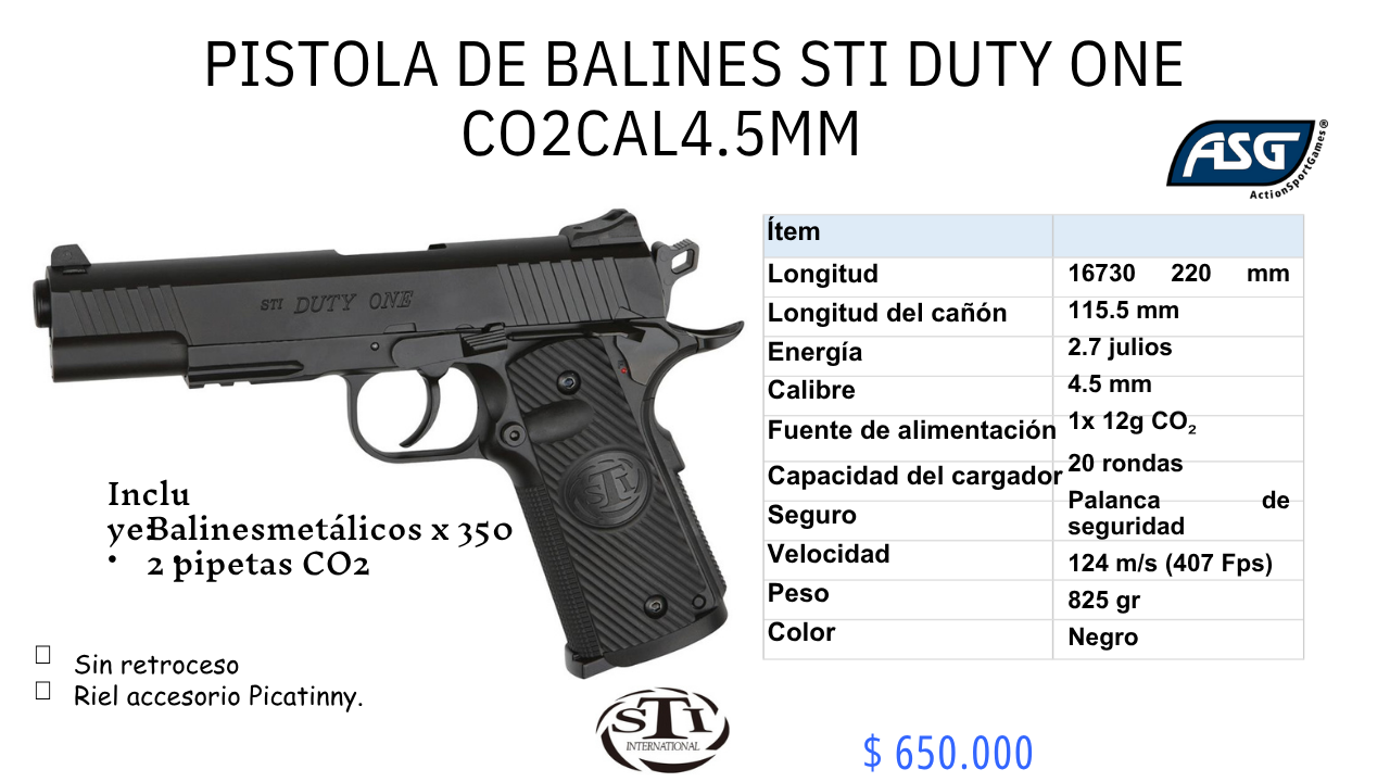 Pistolas De Balines STI DUTY ONE co2 C/4.5mm